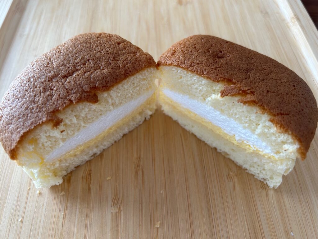 カスタードが濃くホイップが軽い甘さなのでカスタードクリームが強いです。生地は名前のままでふんわりとしていました。