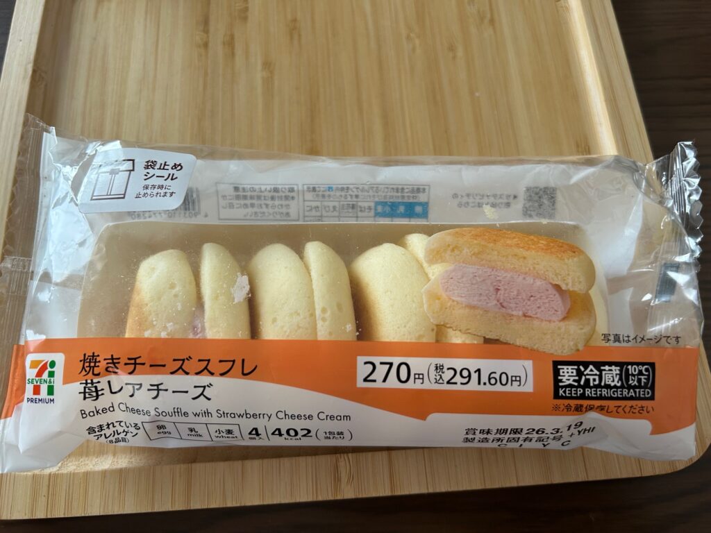 「焼きチーズ スフレ苺レアチーズ4コ入」\270-(税抜) 402Kcal(4コ分) 2026-3発売