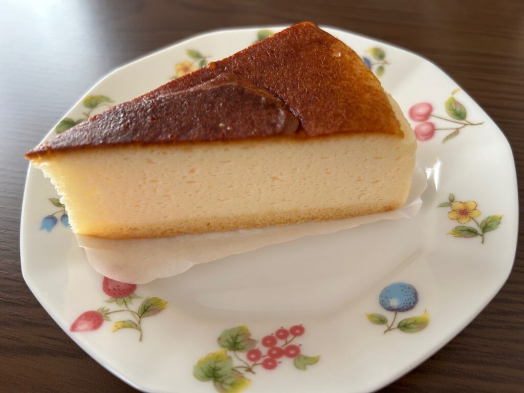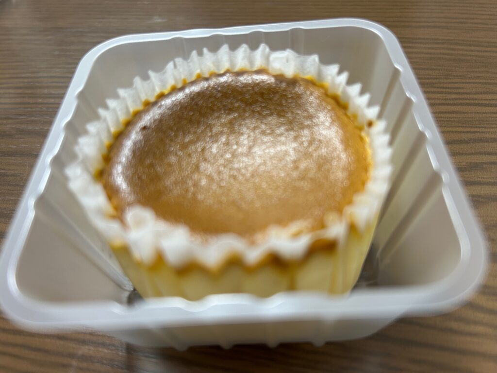 「バスク風チーズケーキ」2個入り\380-(税込)は、バスクの焼きめが甘くカステラを思わせる。生地がくちどけ柔らかく甘さが強めである。
