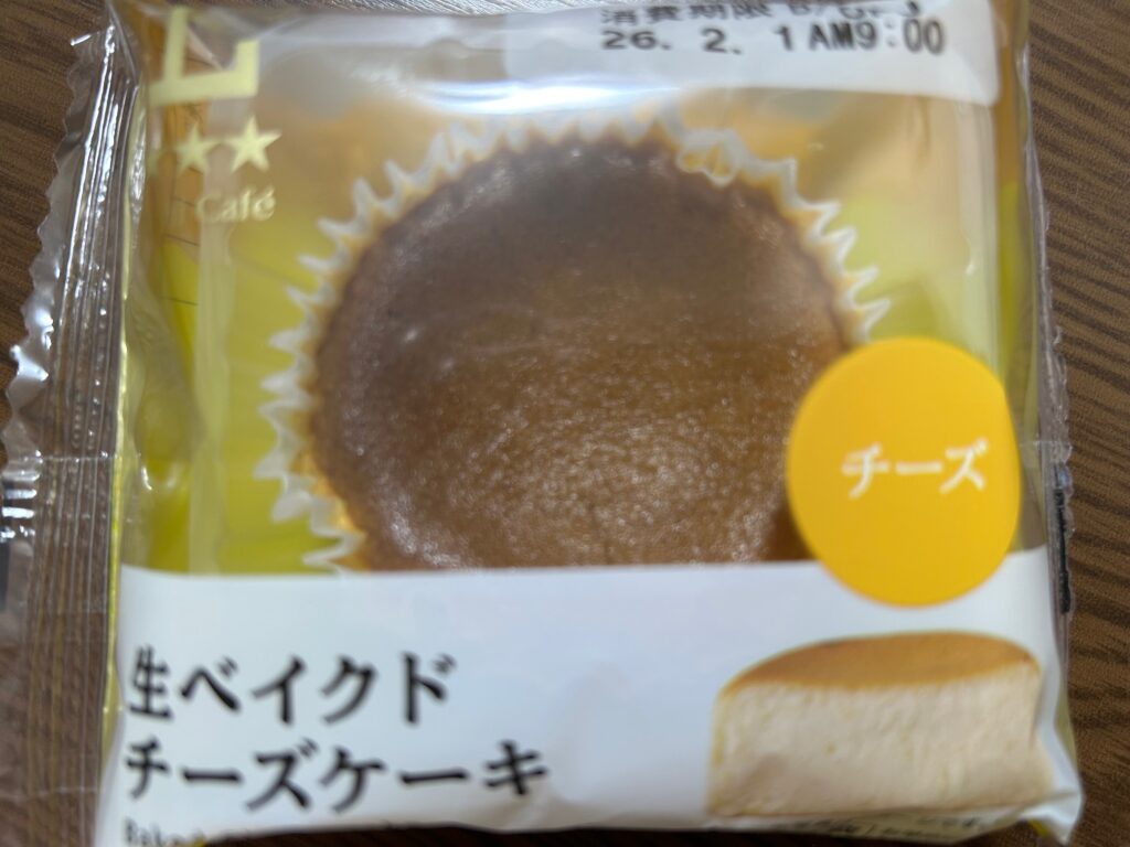 「生ベイクドチーズケーキ」\286-(税込)196Kcalは、王道のベイクドチーズケーキと言える商品で、プリンぽいなめらかさがありました。