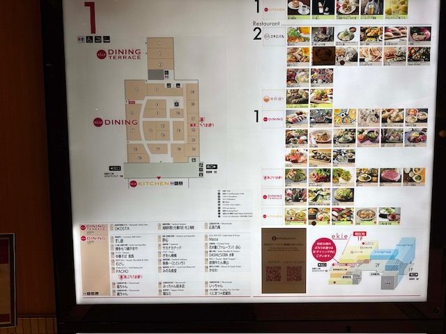 エキエ広島で一緒に楽しみたいグルメ情報として、1F食事と1,2Fお土産購入を同時に楽しめます。