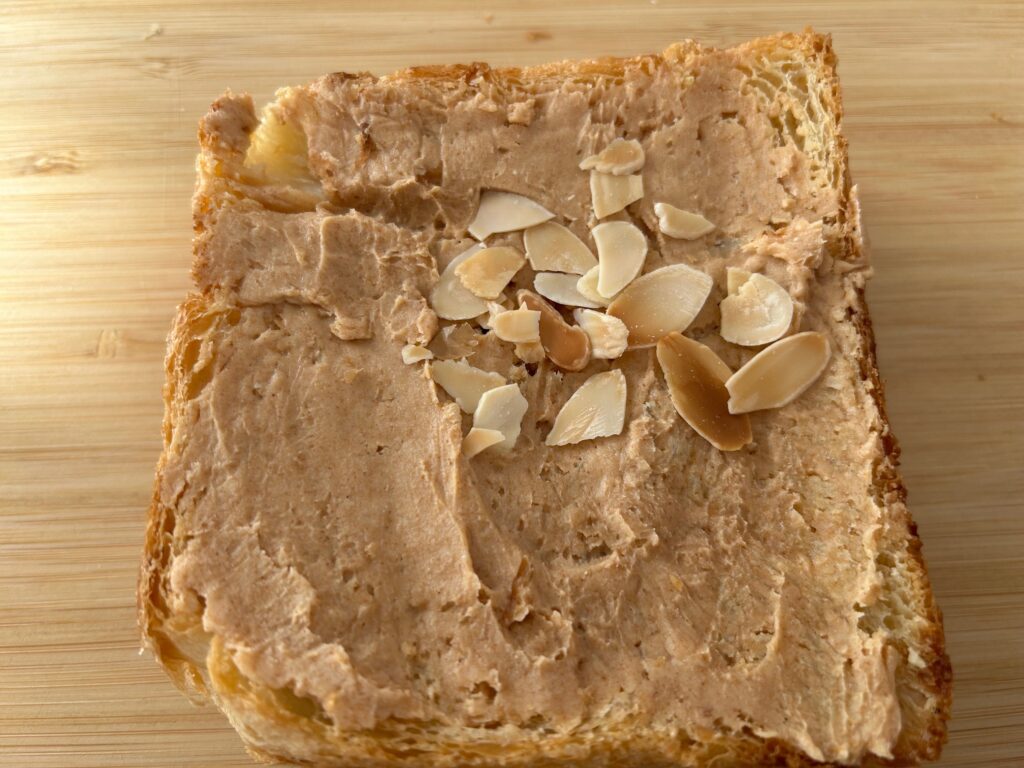 先日行くと新商品がありましたので早速購入しました。中でもお気に入りなのが「きな粉のクロワッサントースト」下記画像のものです。きな粉とクロワッサンのモチモチ感がきなこもちを思わせるような食感でした。