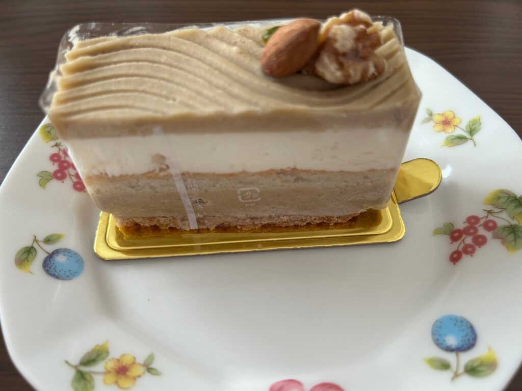 一般的な洋菓子店のモンブランと比べると、栗の味がしっかりとしていて生クリームと一緒に食べても負けない旨みがありました。