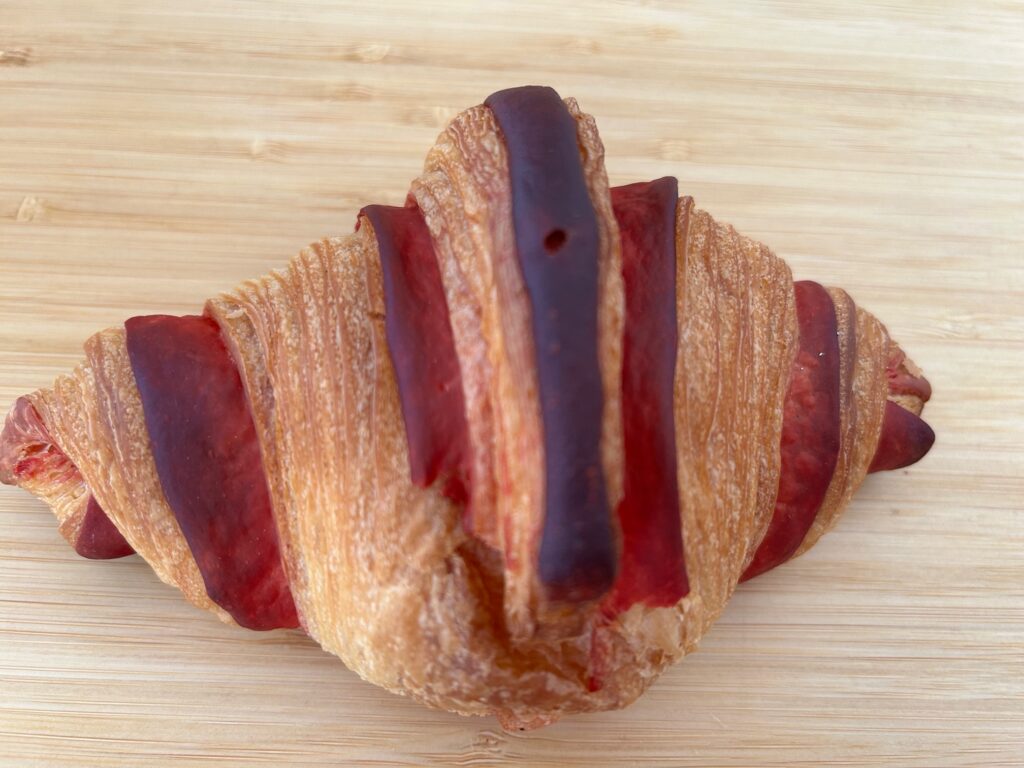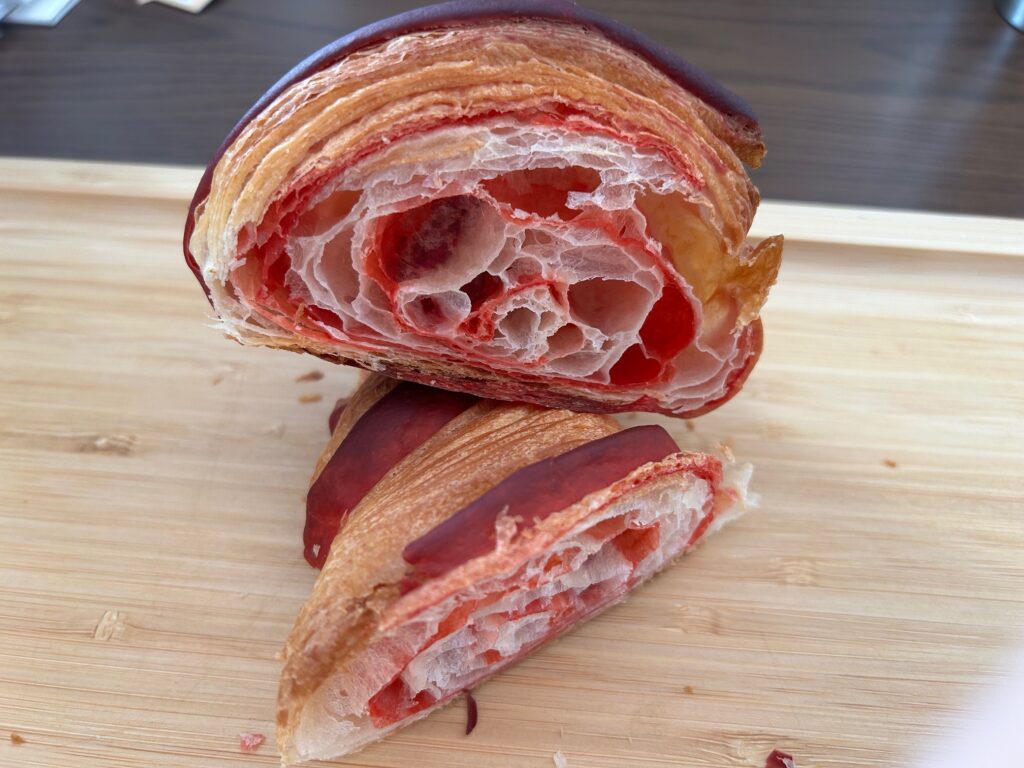 クロワッサンフランボワーズは果肉ジャムがたっぷりと入り、フランボワーズの酸味とバターの風味がうまくマリアージュしてました。