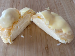 ふんわりとしたシュー生地の中に、卵感のあるなめらかなカスタードクリームがたっぷり詰まっています。