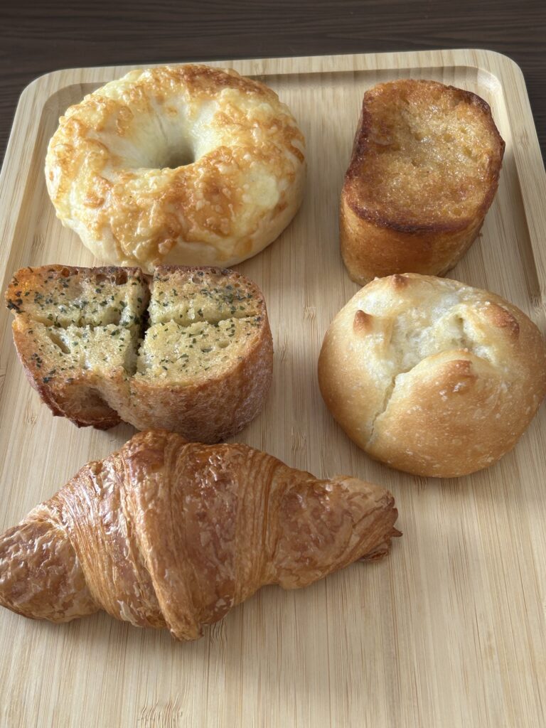 クロワッサンは外はパリパリ中はフワフワタイプでした。スコーンは余りパサパサとかなく食感はクッキーに近いです。フレンチトーストがしっとりと甘すぎす食べやすいです。