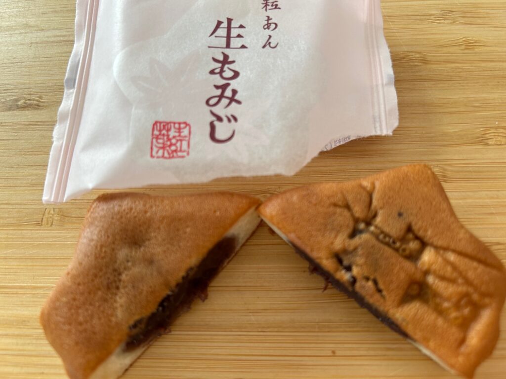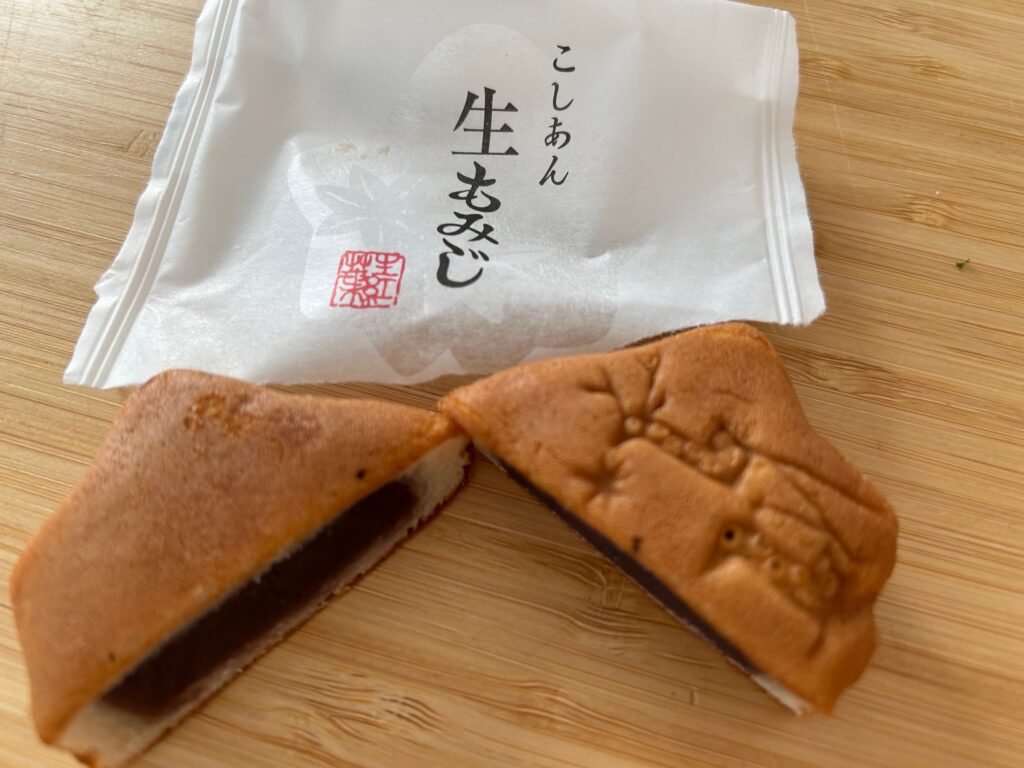 「もみじ饅頭」と聞くと、ふんわりした焼き菓子系を思い浮かべる人も多いですが、生もみじは従来のもみじ饅頭とはまったく異なる方向性の和菓子で、もちもちとした食感や味わいです。